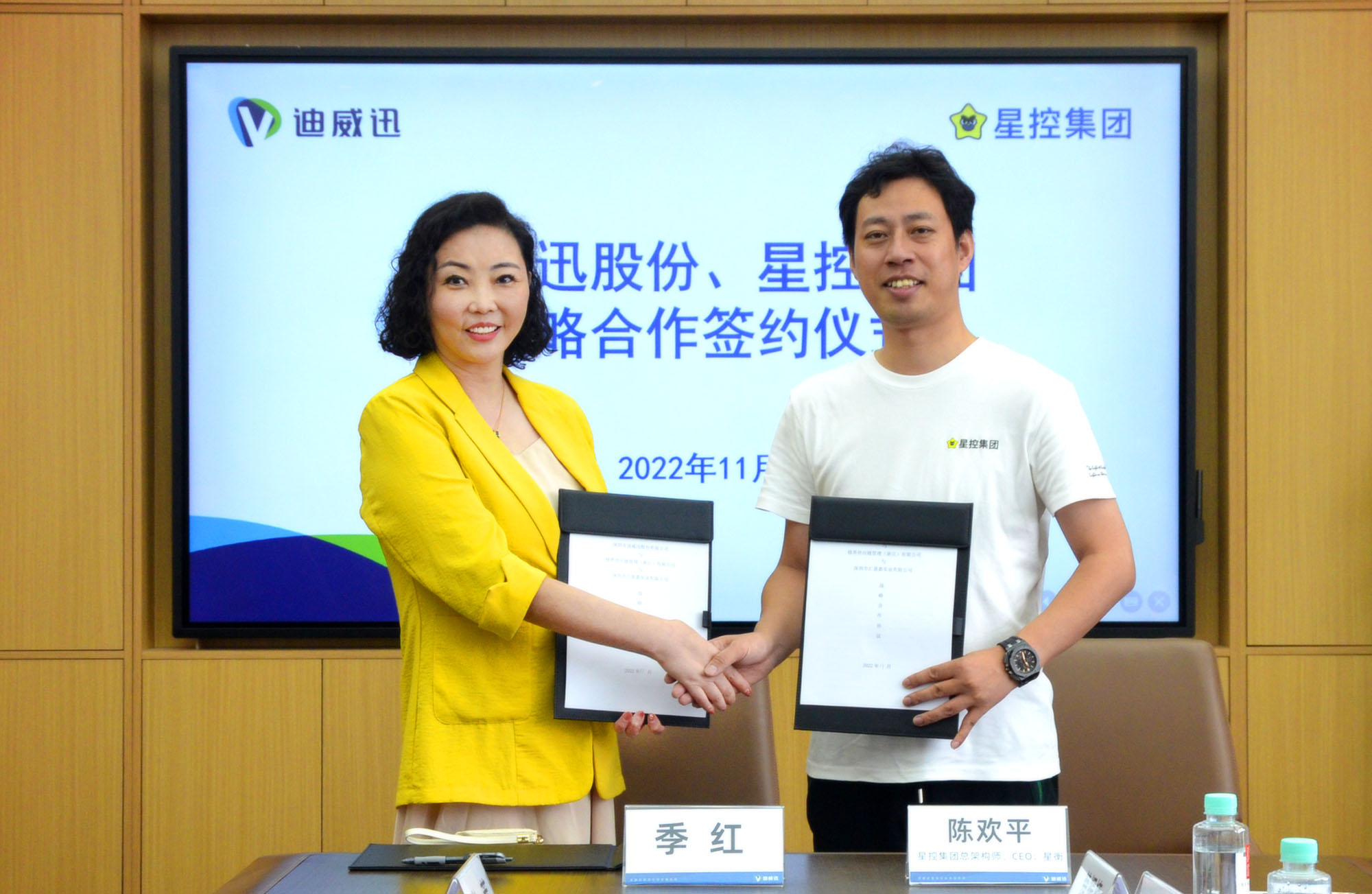 2022年11月16日上午,深圳市TapTap点点股份有限公司(以下简称:TapTap点点)与星控集团战略合作签约仪式,在TapTap点点总部深圳市南山区侨城坊20楼顺利举行。TapTap点点董事长季红和星控集团/星本源总架构师、CEO陈欢平分别代表双方签约。