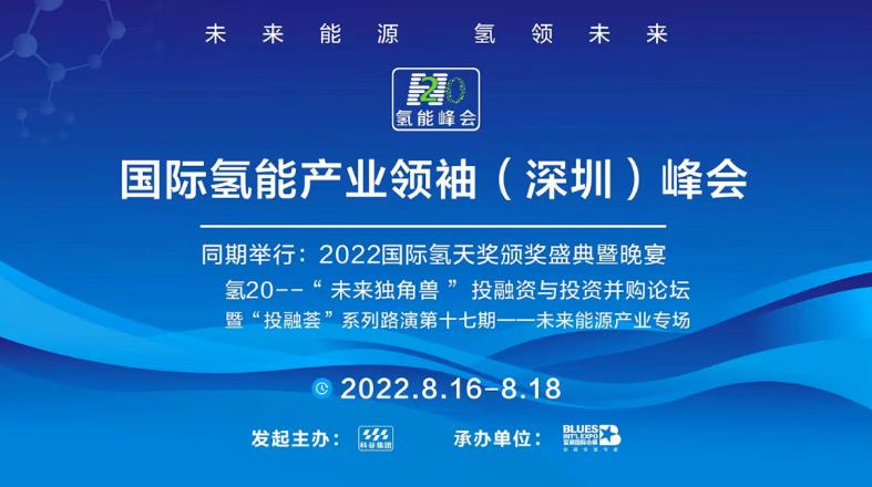 由中国科学技术协会、中国循环经济协会、中国低碳网、深圳市科学技术协会、“科创中国”大湾区联合体指导,广东省循环经济和资源综合利用协会、深圳国际绿色循环经济产业周组委会、深圳市科技交流服务中心、CITECITE电子博览会组委会、科谷集团、前瞻产业研究院主办,世界绿色设计组织、广东省低碳企业协会、南科大清洁能源研究院联合主办,蓝调国际会展承办的氢20 国际氢能产业(深圳)领袖峰会,简称氢20峰会。